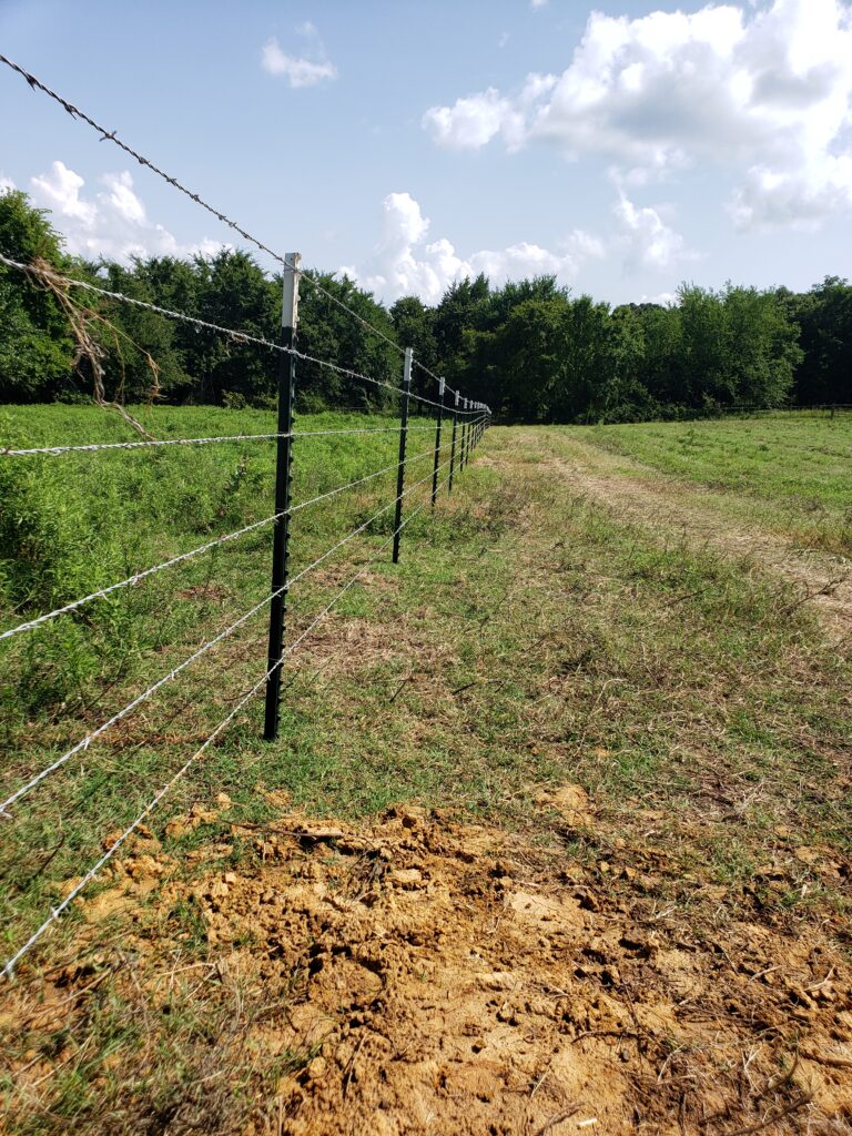 A T-post and barbed-wire fence is a cost-effective fencing solution commonly used for enclosing large areas, such as farms, ranches, and rural properties.